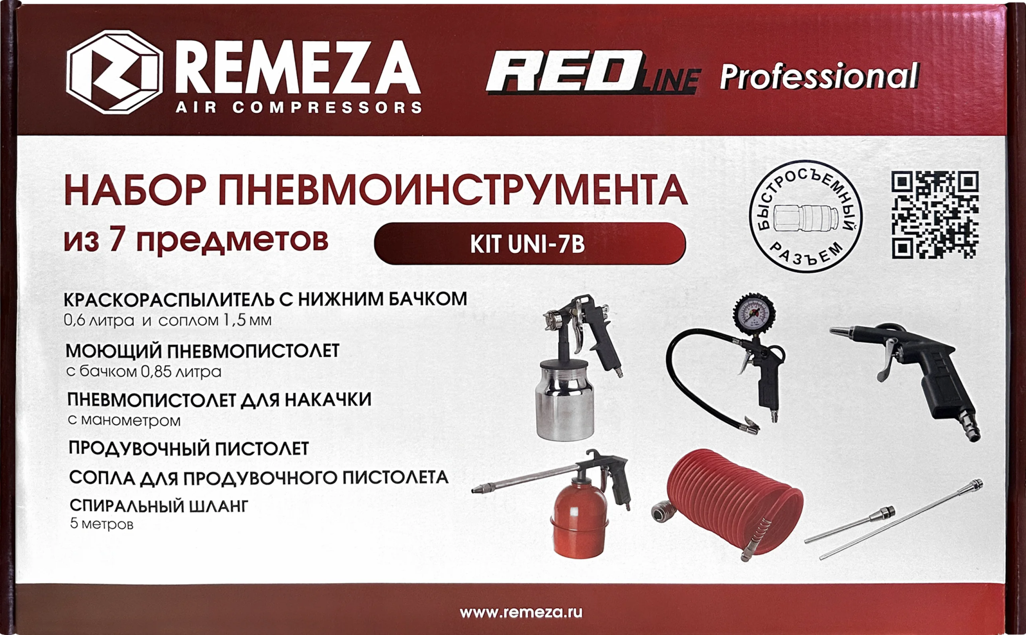 Все инструменты в наборах имеют быстросъёмное подключение, благодаря чему к спиральному шлангу можно быстро подключить любой инструмент и приступить к выполнению рабочей операции.